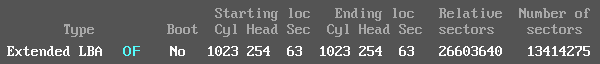 You can see from the table above, that there is at least one more Extended Partition Table beyond this one! When you find an Extended Partition Table that has only one entry in it, then you'll know you've finally reached the last partition table in the whole daisy-chain of Tables.