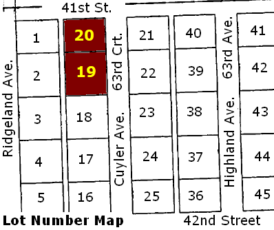 Received from John Sedory as rental of north 80 ft. of lot No. 34 for house and lot for month of Oct., 1926, in E. A. Cummings Subd. So the author's family moved into this house no later than October, 1926. Lot Number 34 was two lots south of 42nd Street, on the west side of 63rd (or Highland) Ave. (looking at the "Lot Number Map" we created at the bottom of the next footnote, it would be south of Lot No. 36). 3[Return to